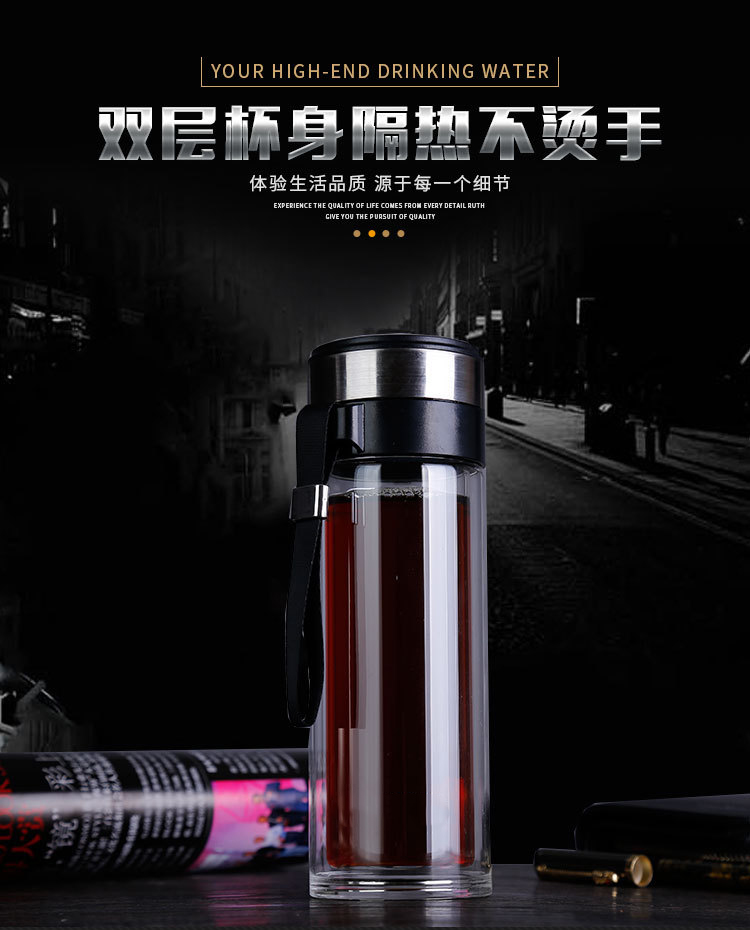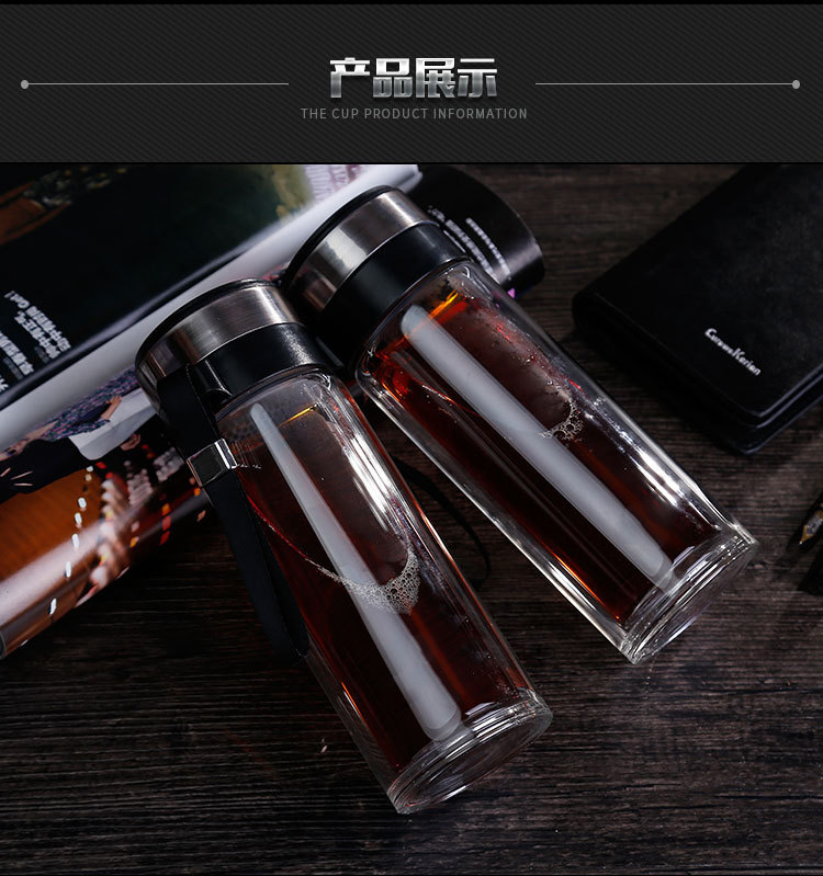 江西聚星石油化工定制雙層玻璃杯客戶禮品廣告杯