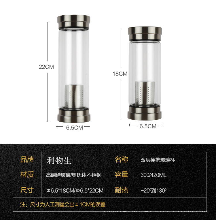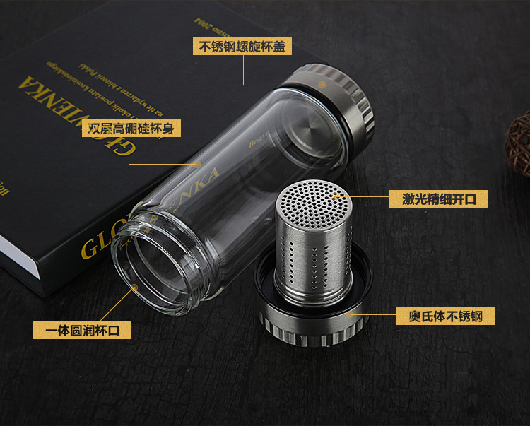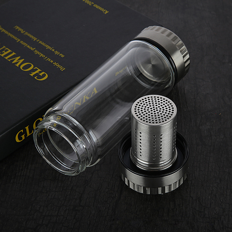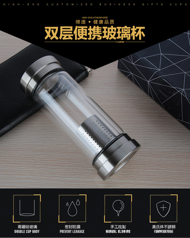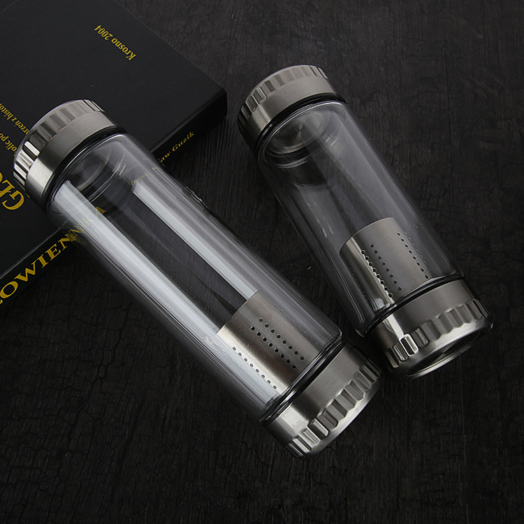 新款熱銷雙層泡茶師 雙層玻璃旅行茶杯 登山攜帶方便雙層玻璃杯杯子