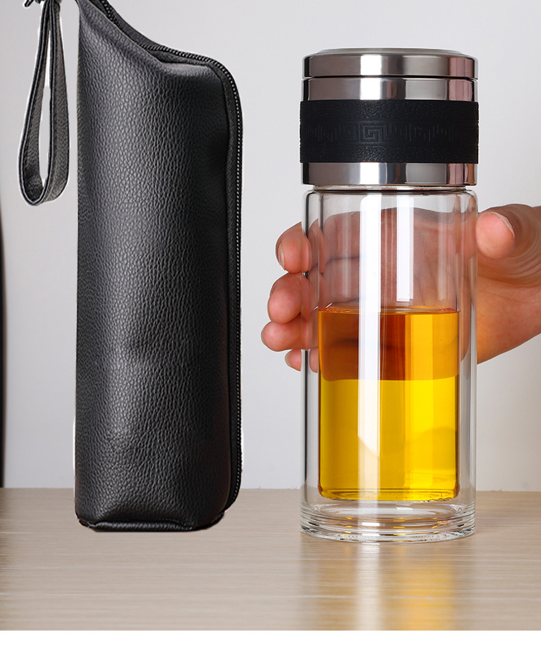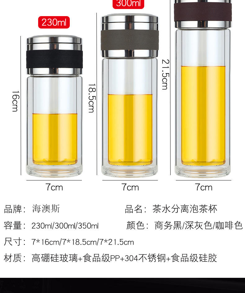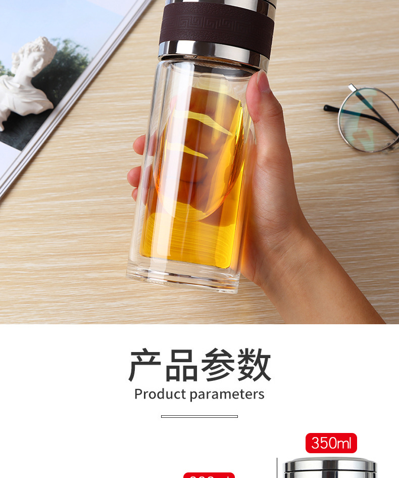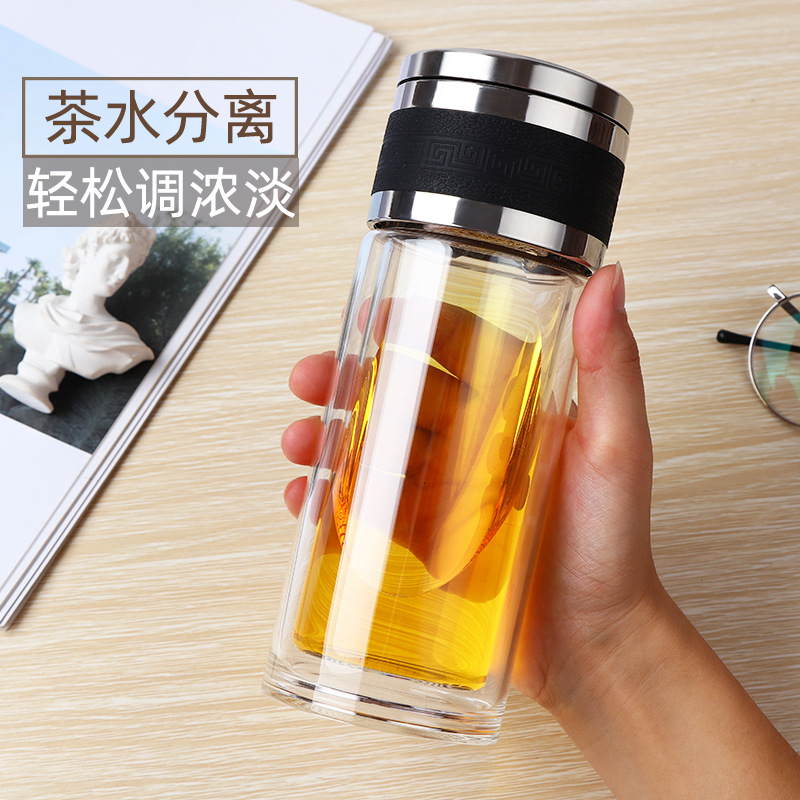 新款茶水分離泡茶杯雙層透明玻璃杯車載過濾水杯便攜辦公杯子定制