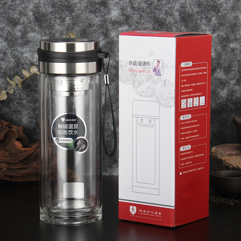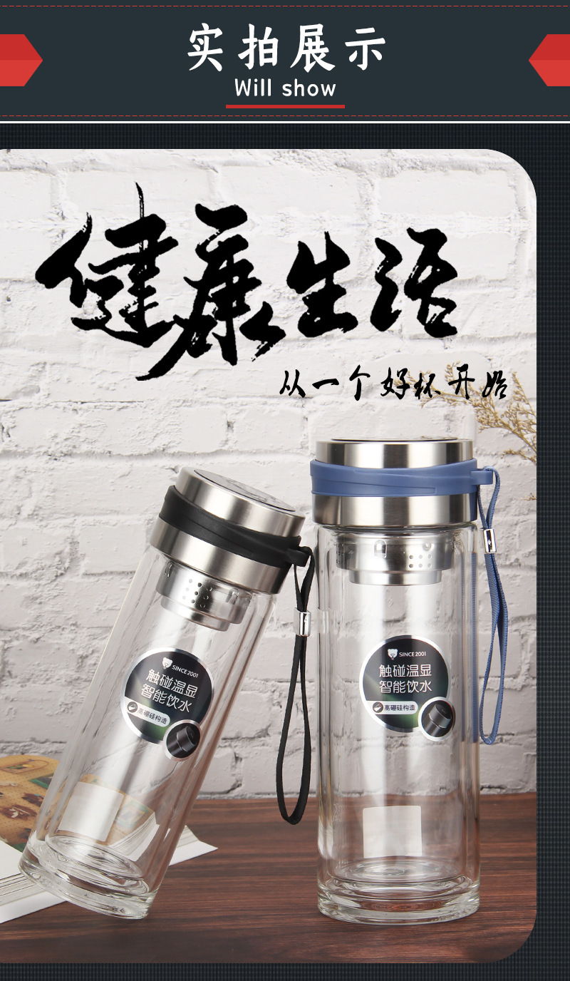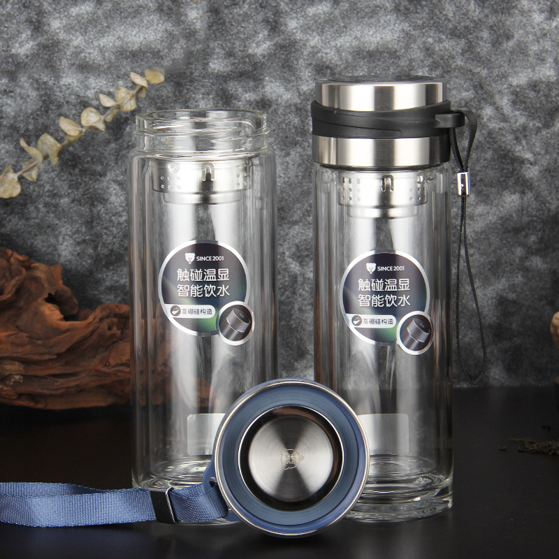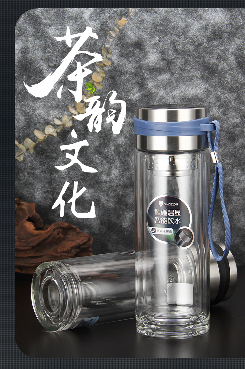高硼硅雙層溫度顯示提繩玻璃同學會議團建獎品促銷禮品杯