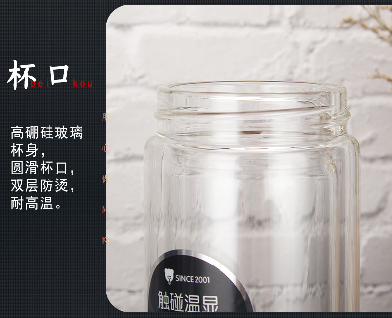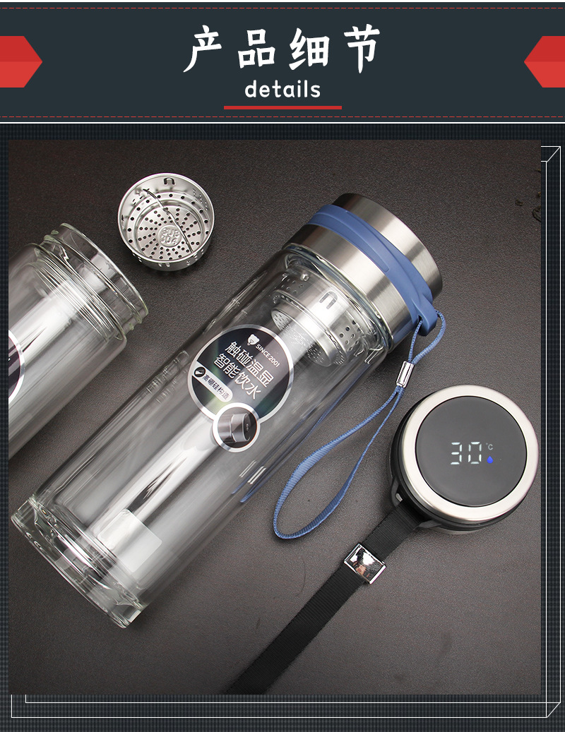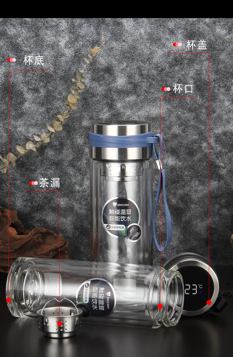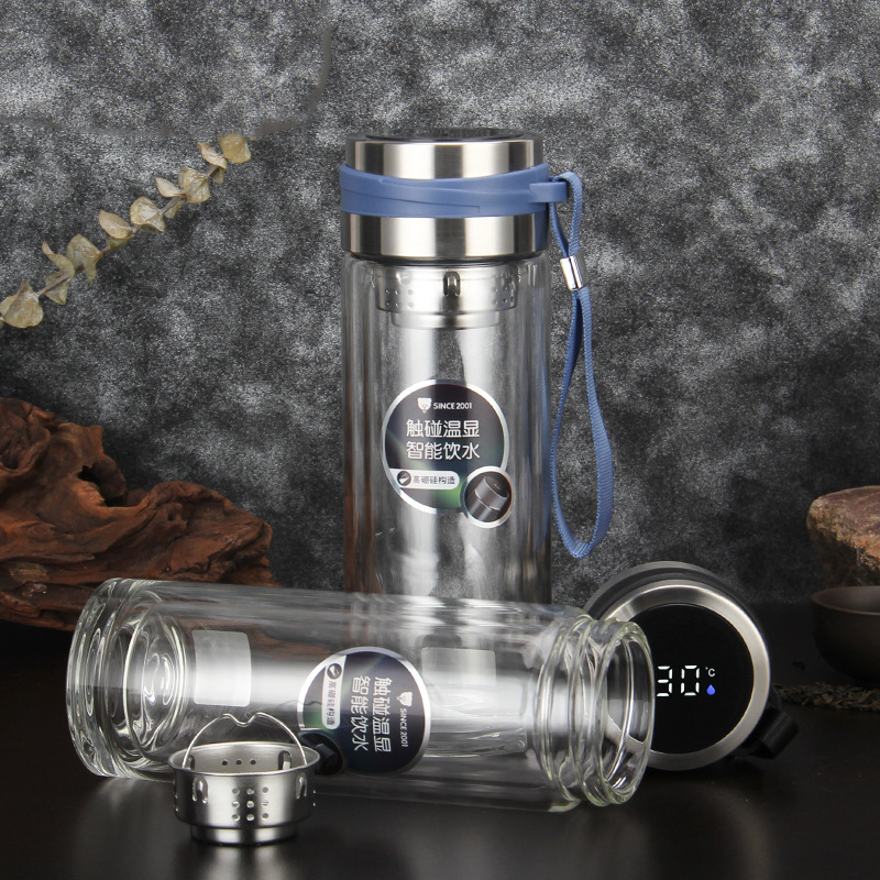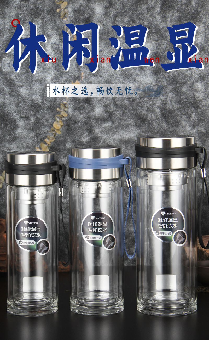 高硼硅雙層溫度顯示提繩玻璃同學會議團建獎品促銷禮品杯