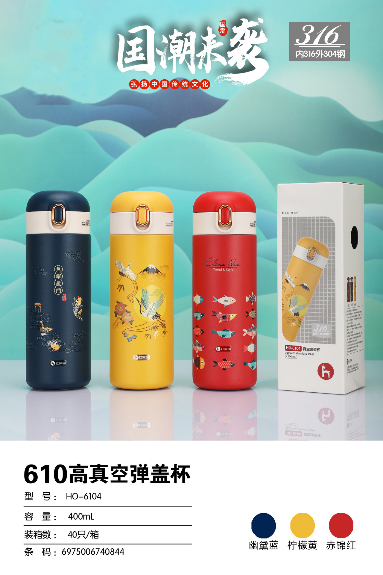 316不銹鋼真空保溫杯中國(guó)風(fēng)潮彈蓋車載杯LOGO