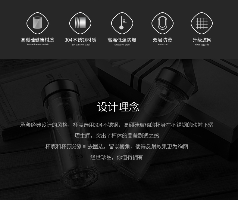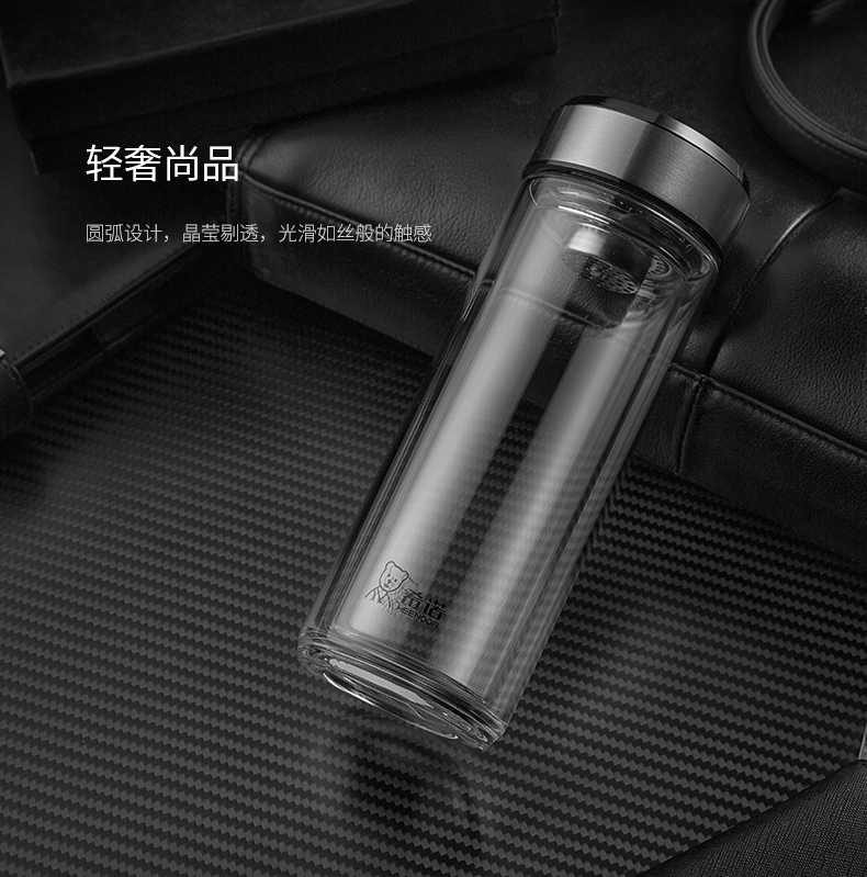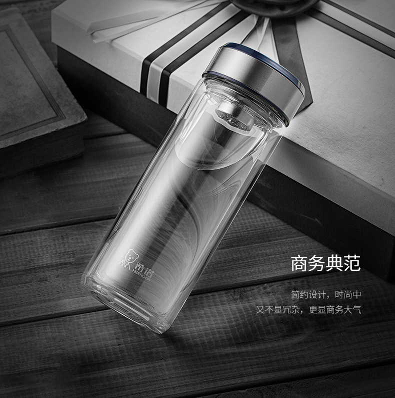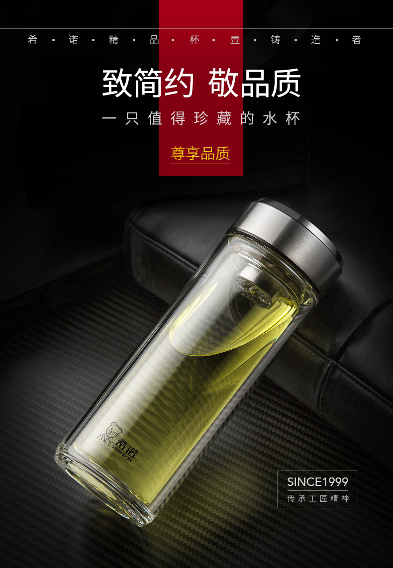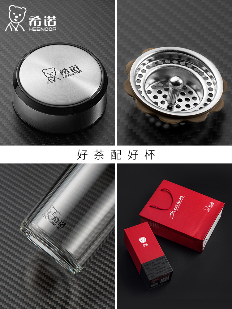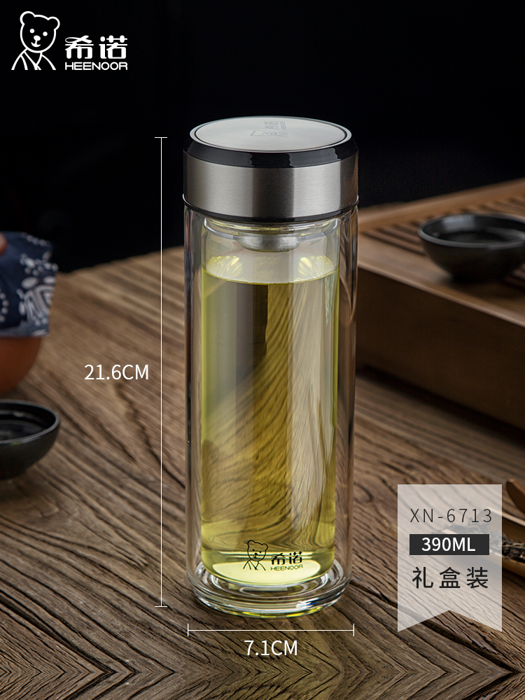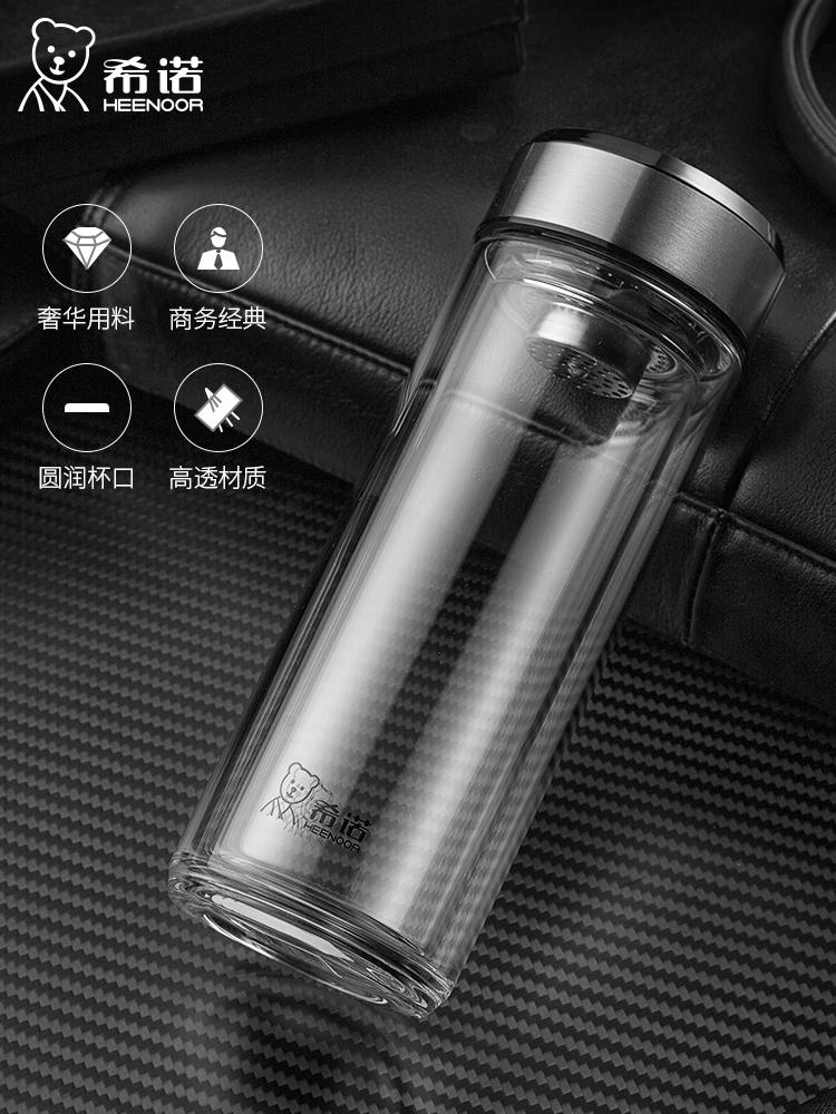 希諾雙層玻璃杯茶水分離水杯男家用透明過濾泡茶杯子高檔送禮商務