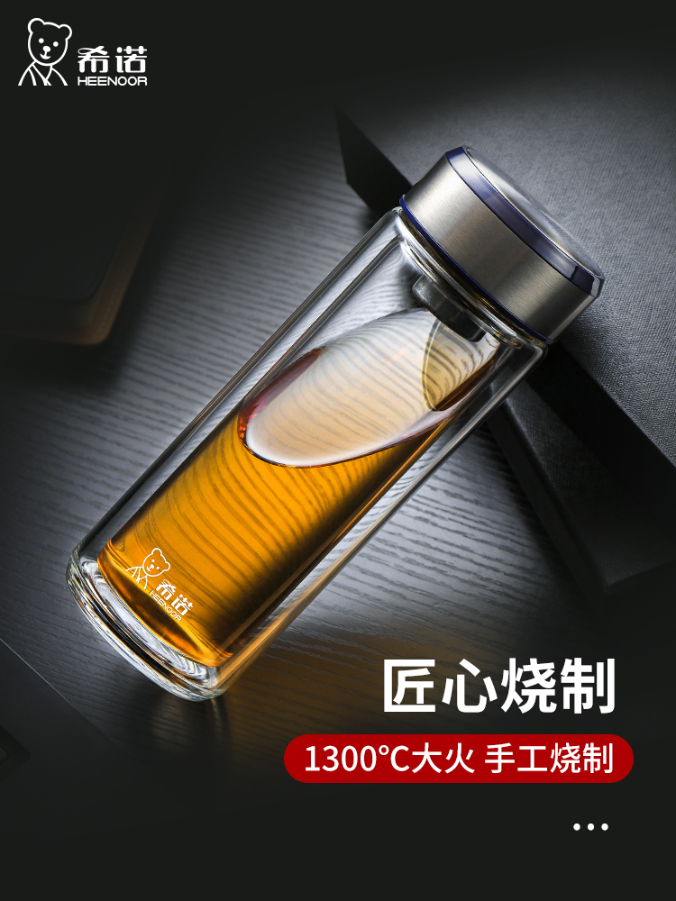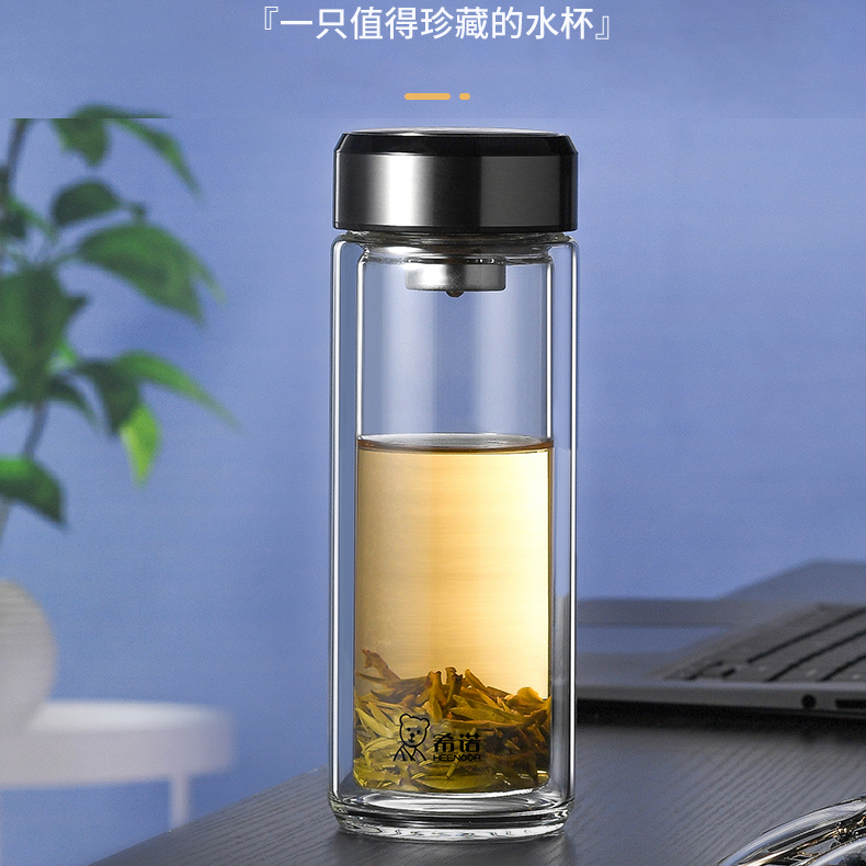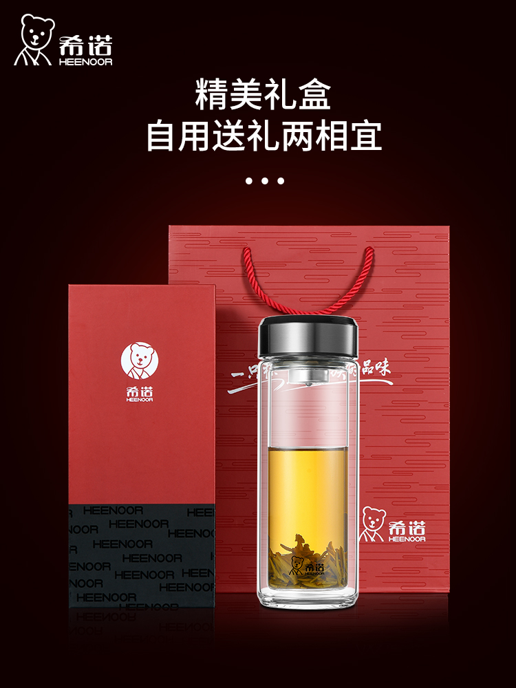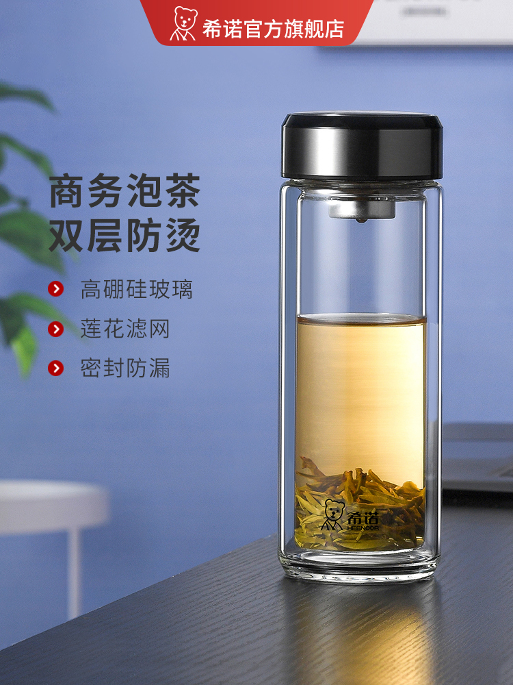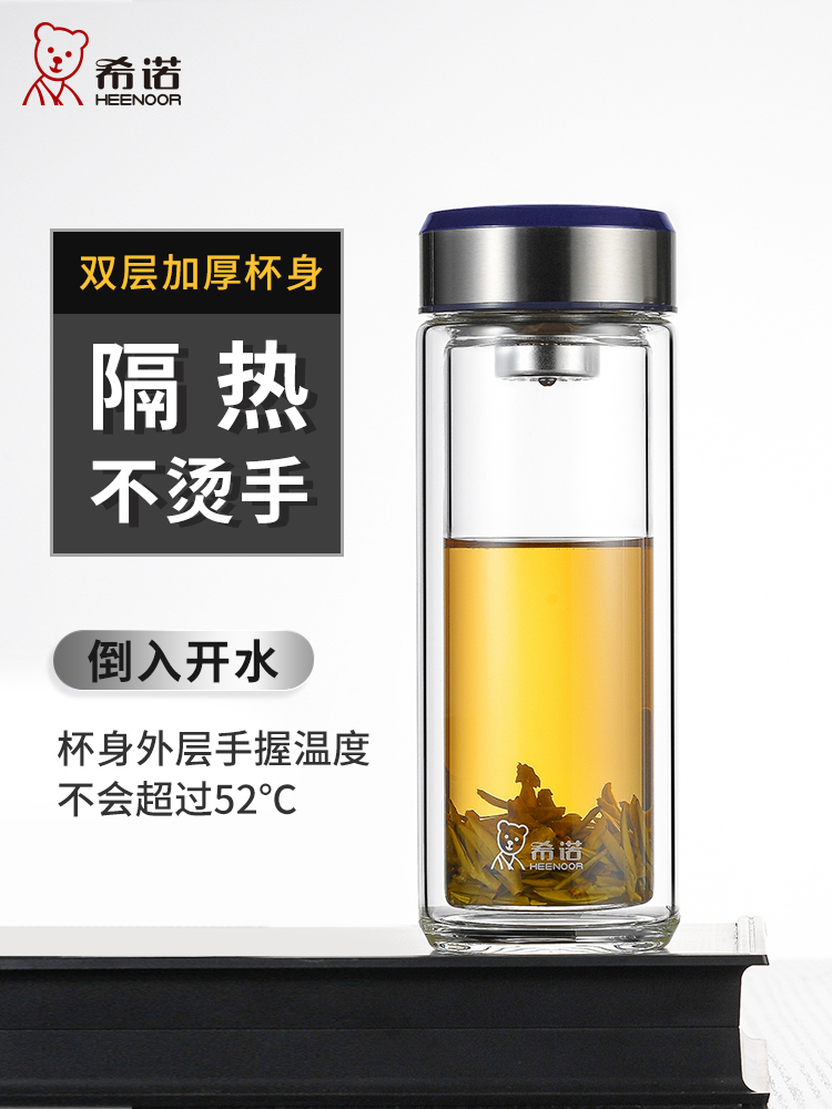 希諾雙層玻璃杯茶水分離水杯男家用透明過(guò)濾泡茶杯子高檔送禮商務(wù)