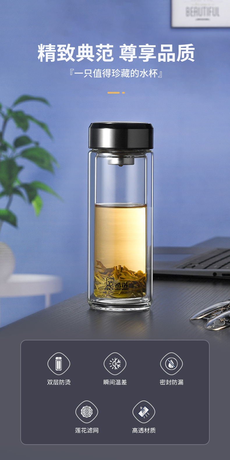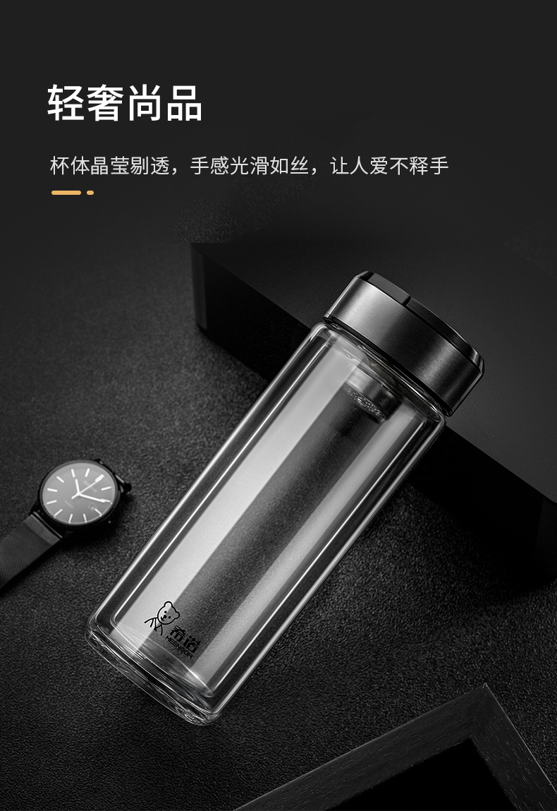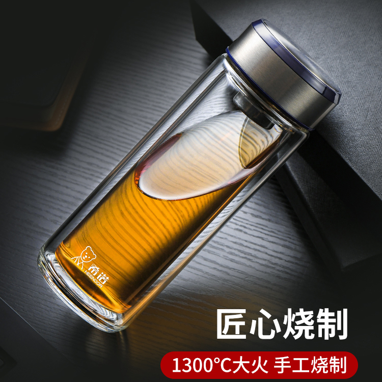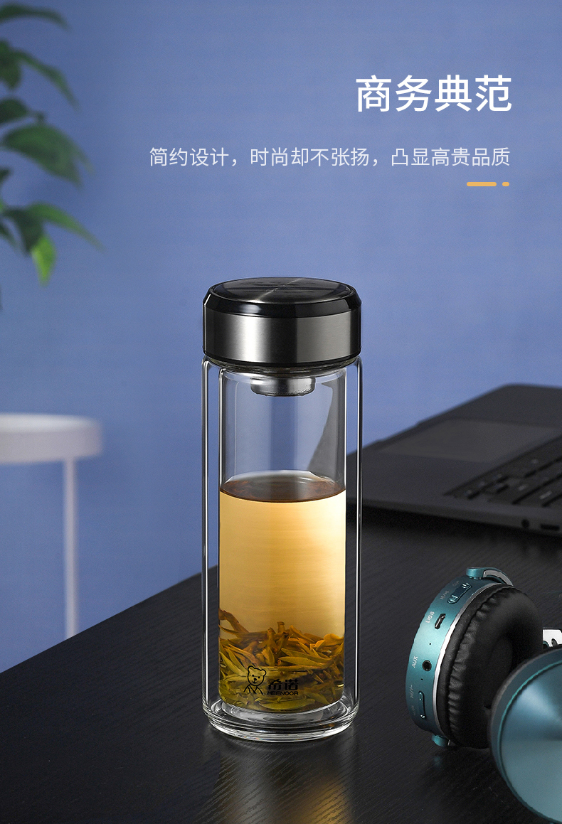 希諾雙層玻璃杯茶水分離水杯男家用透明過(guò)濾泡茶杯子高檔送禮商務(wù)