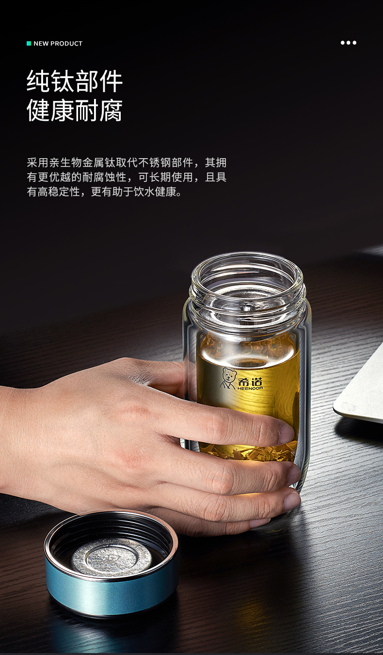 希諾雙層抗菌玻璃杯隔熱男女士高檔車載水杯便攜杯子帶濾網茶杯