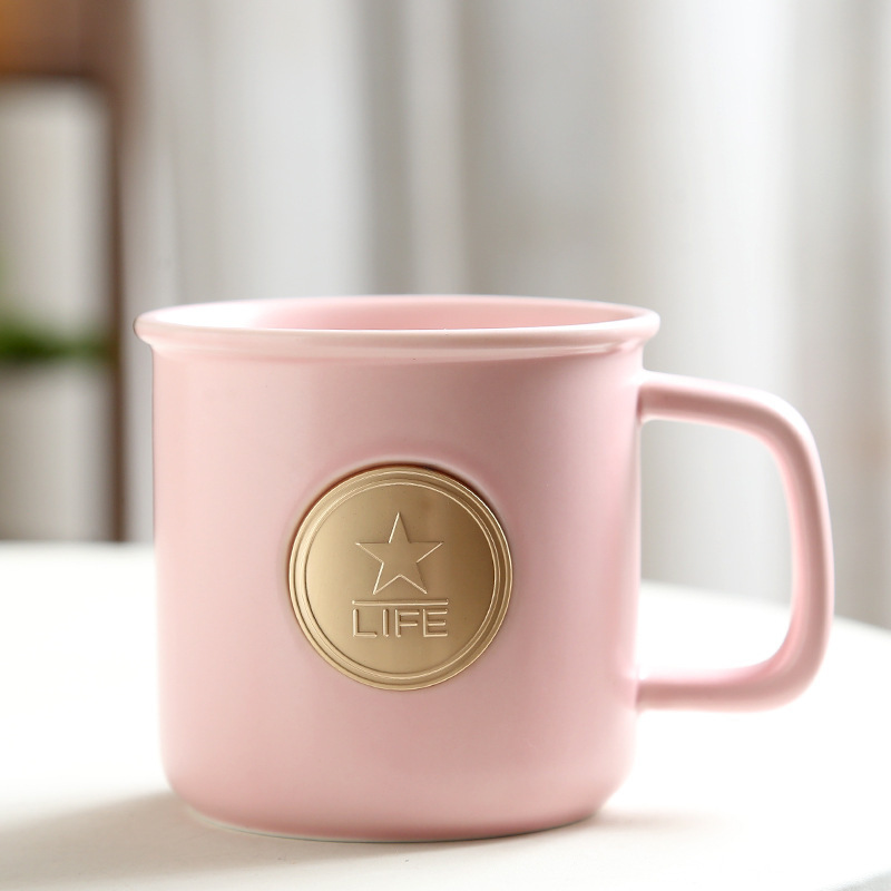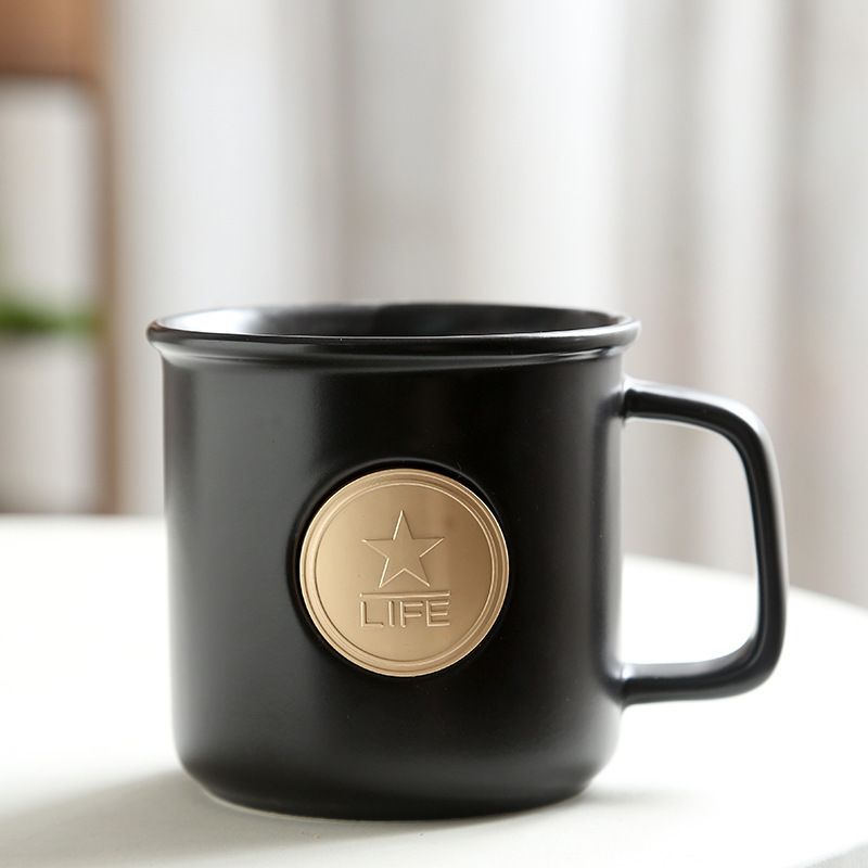 星巴風復古馬克杯銅牌咖啡杯水杯陶瓷杯批發制定logo文創開業禮品